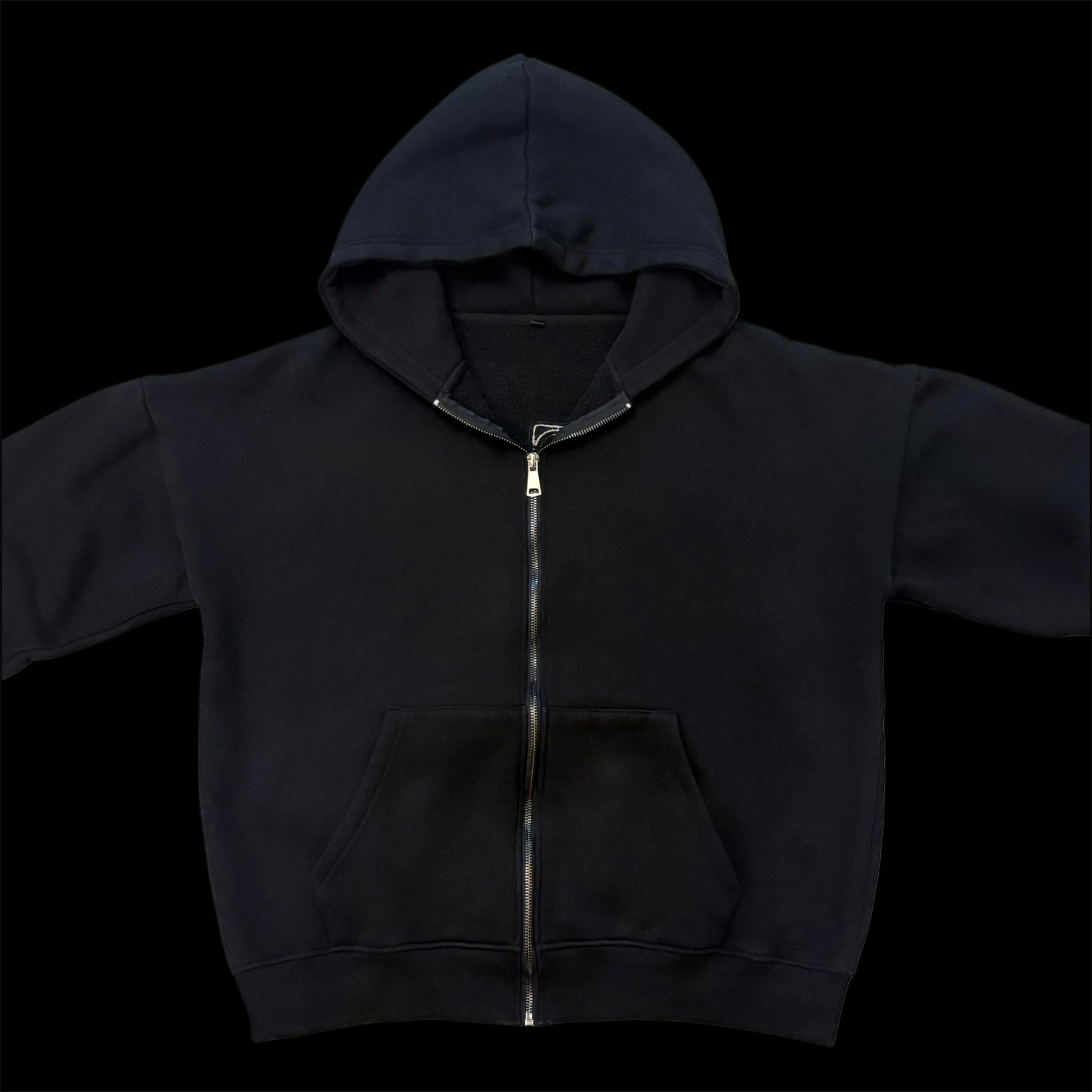 Sharp black zip-up hoodie with an oversized cut and eye-catching red distressed text graphic. The relaxed silhouette provides effortless style and comfort, while the bold typography adds personality to your everyday rotation. A versatile essential for modern streetwear.